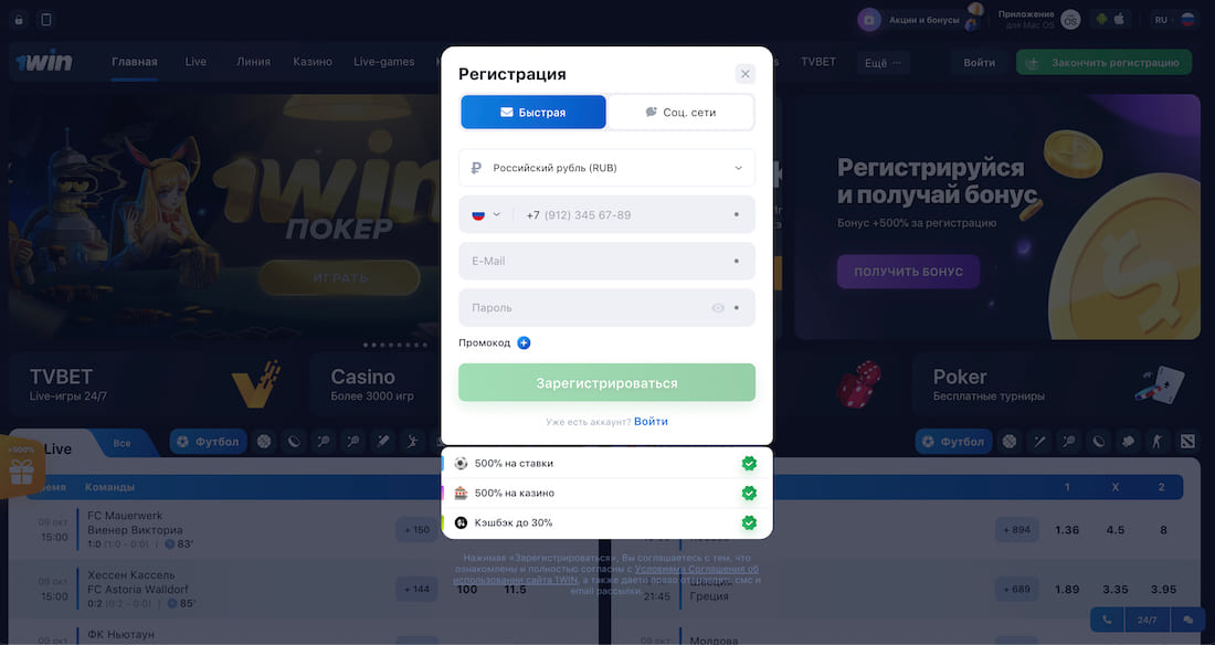 Многие клиенты БК выбирают официальный сайт для прохождения регистрации. Через него можно быстро создать свой профиль – процедура занимает 5-10 минут. Удастся получить бонус за регистрацию на официальном сайте 1вин, но его важно отыграть согласно условиям.