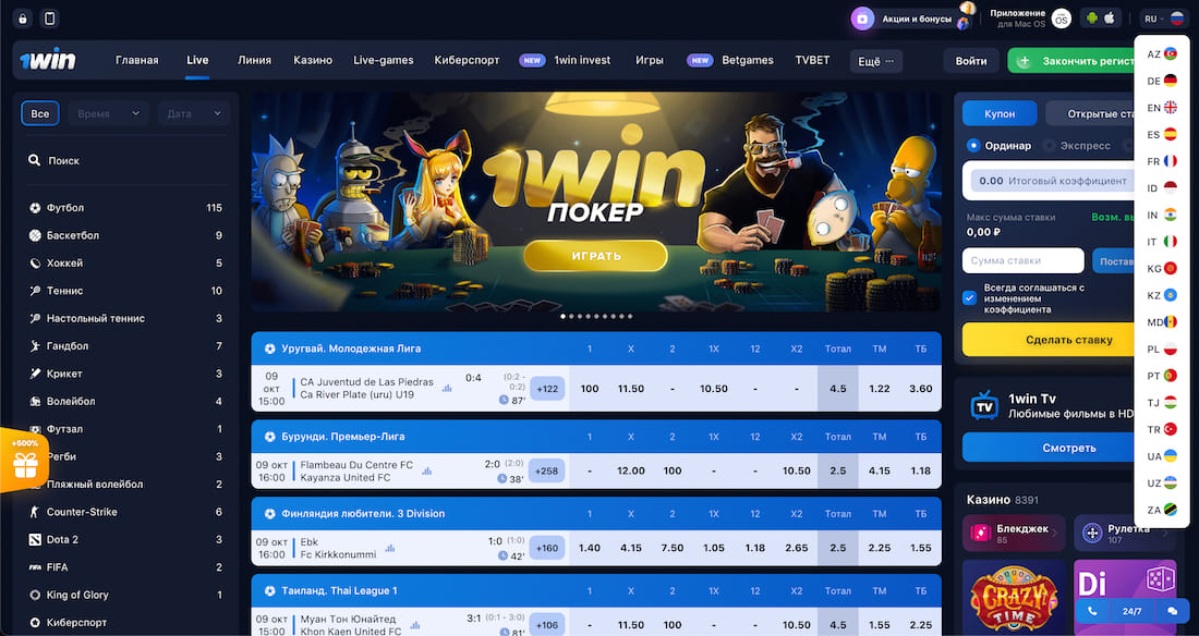 1 win – популярная букмекерская контора, которая работает с 2016 года. На сайте можно сделать ставки на спорт, играть в слоты в разделе «Казино», участвовать в турнирах и получать бонусы. Чтобы были доступны все услуги заведения, нужно обязательно зарегистрироваться и пройти верификацию.